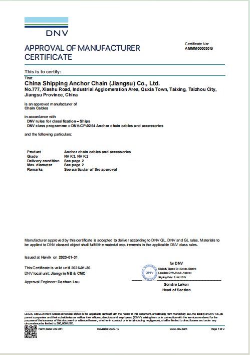 率先開發(fā)M4級(jí)錨鏈、 R7/R8級(jí)系泊鏈,打造完整而先進(jìn)的產(chǎn)品體系。